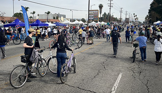 Our 2025 outreach will be along one of CicLAvia’s most popular routes: Culver City to Venice Beach. This 10 mile route runs from the Culver City Arts District to Venice Beach. Along the way, you’ll pass the old Helms Building, the Culver City movie studios, the Mar Vista Farmers Market, the Venice Canals, and the boutique shops at Abbott Kinney, before reaching Venice Beach and Muscle Beach. A truly eclectic microcosm of the melting pot we call home.
