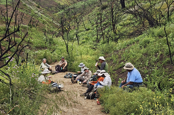 Santa Monica Mountains Trails Council volunteers, led by Cindy Kimmick (left), have assisted the Nature Conservancy with several multi-day oak restoration projects on Santa Cruz Island.