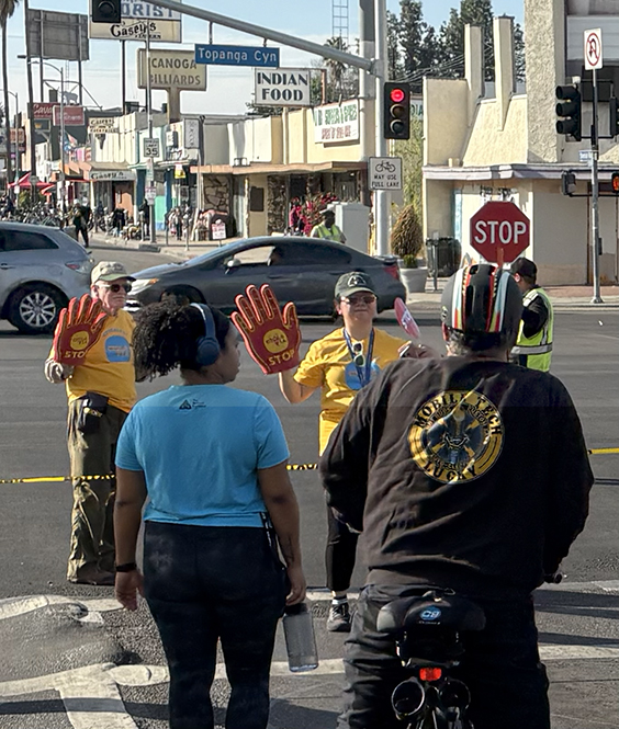 Our volunteers’ activities included ensuring participants paused when motorized traffic was allowed to cross the route, and to staff our outreach tables.